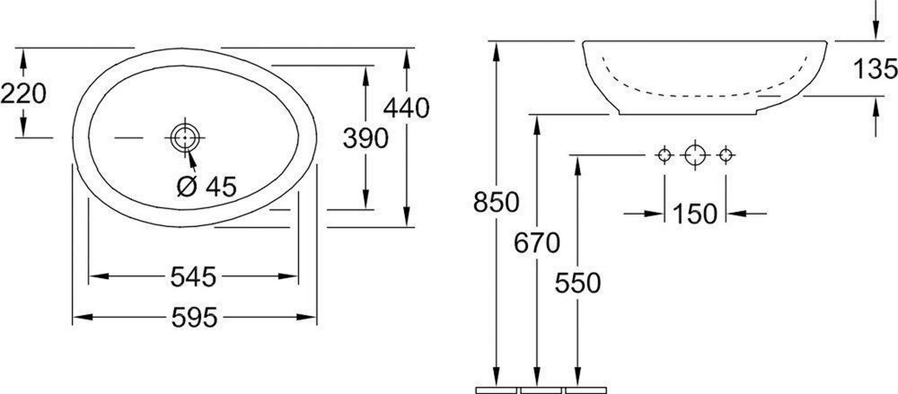 Раковина 595x440хh180мм, д/устан. на столешн., без отв.д/смес., с переливом, крепёж, стержень для д/к в компл, (цв.R1 white cer+), Aveo new gen ZZ Villeroy & Boch Aveo New Generation 413260R1