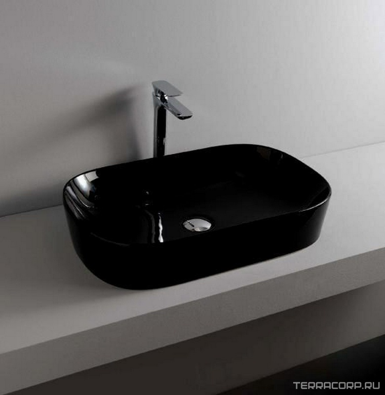 Раковина накладная на столешницу, овальная 55х35хh14,5см, без отв.д/смесит., без перелива, (цв.glossy black), Cognac ZZ