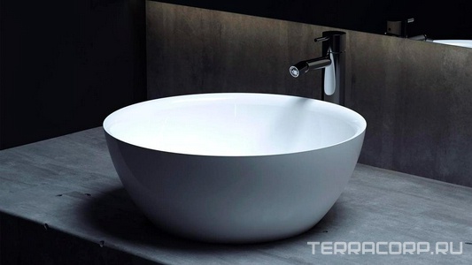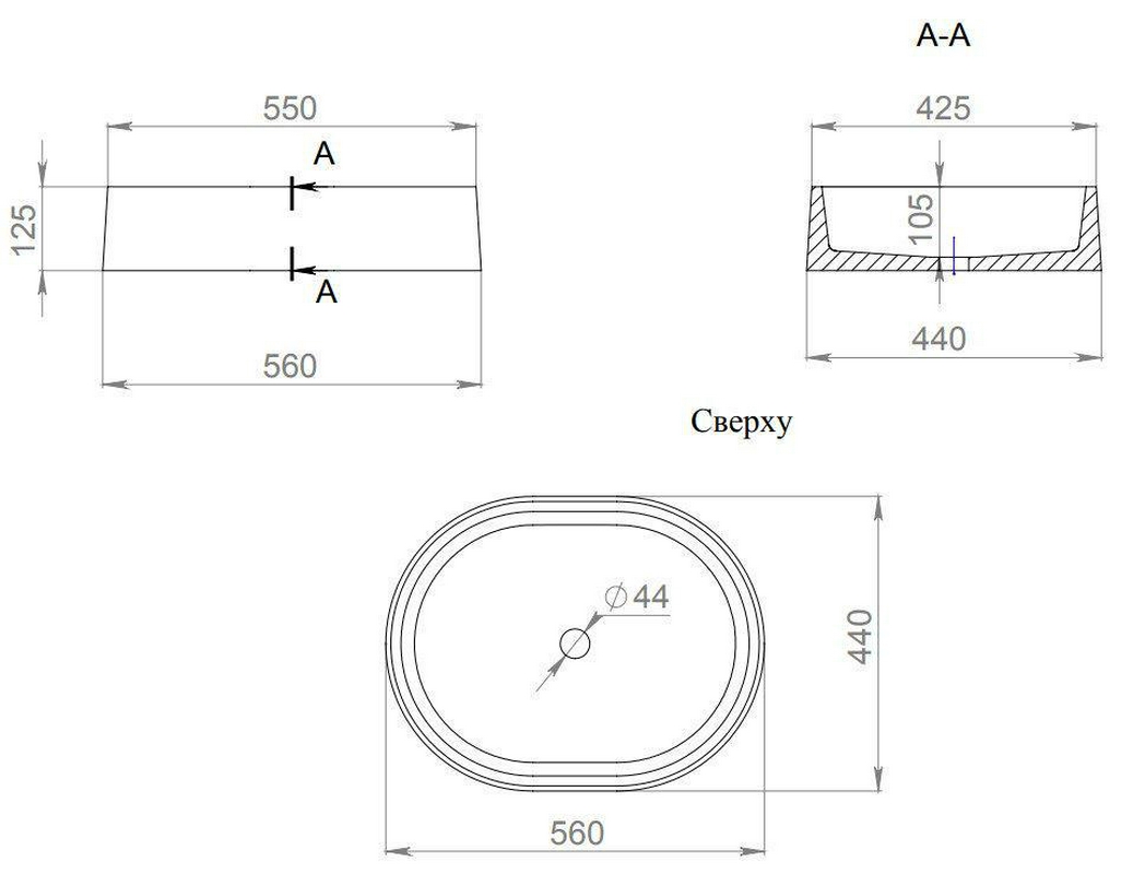 Раковина накладная, овальная 560х440хh125мм, без отв.д/смес, без перелива, (литой камень Solix, глянец цв.белый), Gloria 311 XX