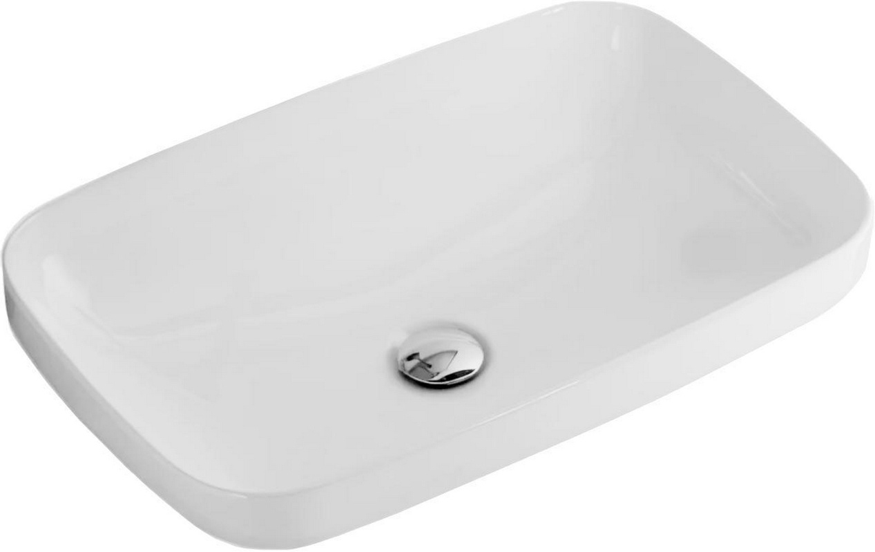 Раковина накладная Line 56x36 см, БЕЗ отверстия под смеситель, (скошенные углы), белая