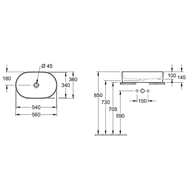 Раковина 560x360хh145мм, овальная, д/устан. на столешн., без отв.д/смес., без перелива, (цв.01 white cer+), Collaro ZZ