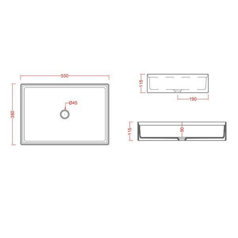 Раковина накладная на столешницу, прямоуг., 550х380хh115мм, без отв.д/смесит., без перелива, (цв. matt black), Scalino ZZ