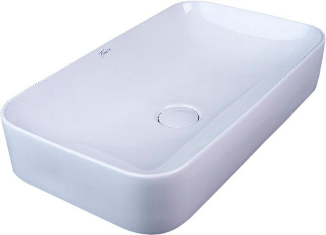 Раковина накладная 610х360хh115мм, без отверстия для смесителя, без перелива, запираемый донный клапан с керамической крышкой в компл., Fluenta KL