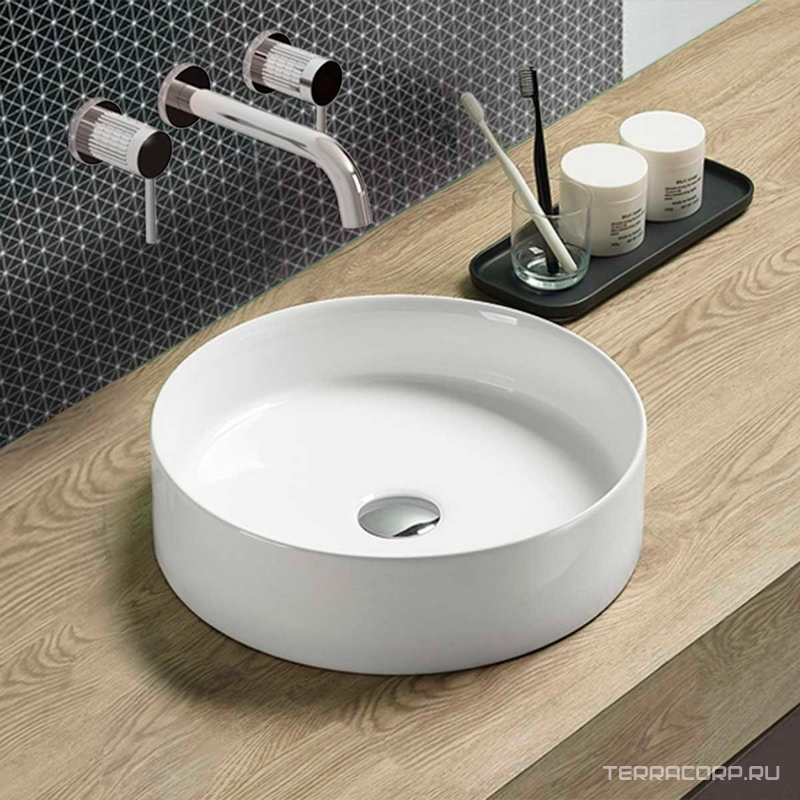 Раковина накладная 400x400x120 мм, БЕЗ д\к DBS-216 без отверстия для смесителя, без перелива, (цв.белый глянец), Vincea ZZ