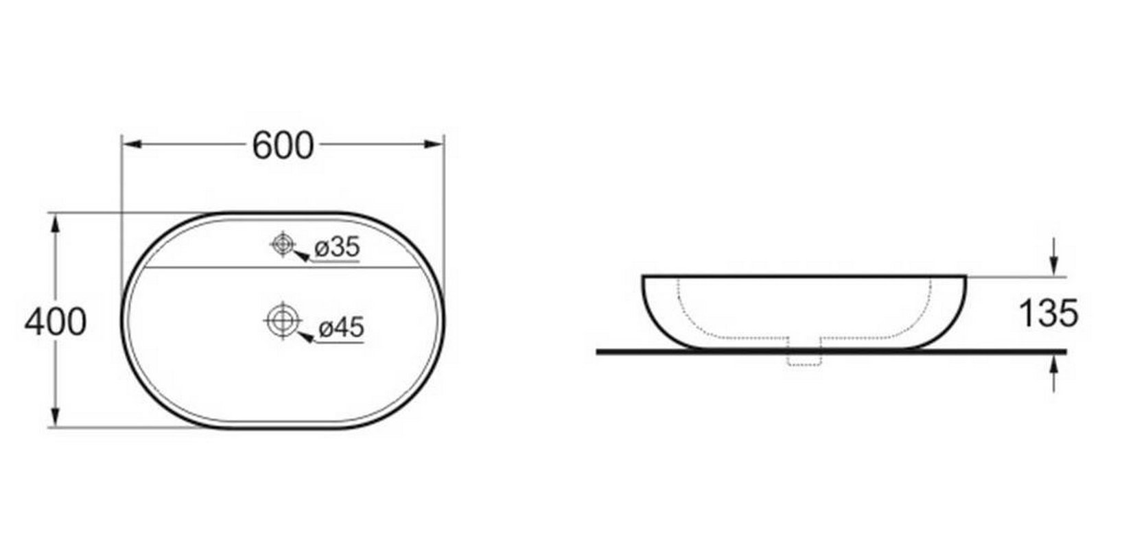 Раковина накладная 600х400х135 мм, с отверстием для смесителя, без перелива, (цв.белый глянец), Vincea ZZ