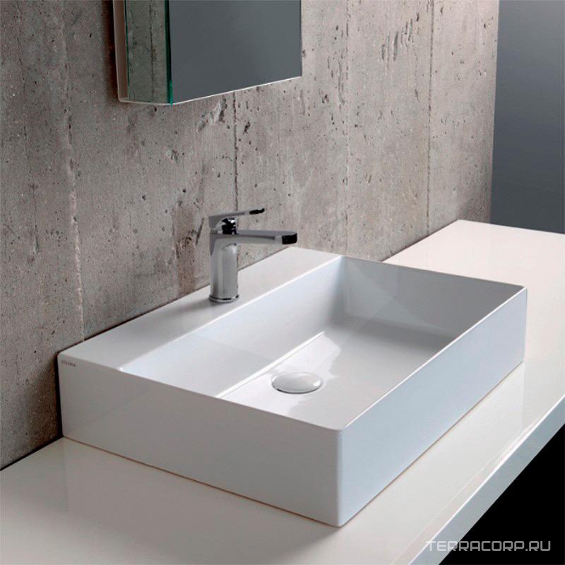 Раковина подвесная/накладная 60х45х12,5см, с 1 отв. для смесителя, без перелива, задняя стенка без глазури, без крепл., (цв.белый), Elegance ZZ