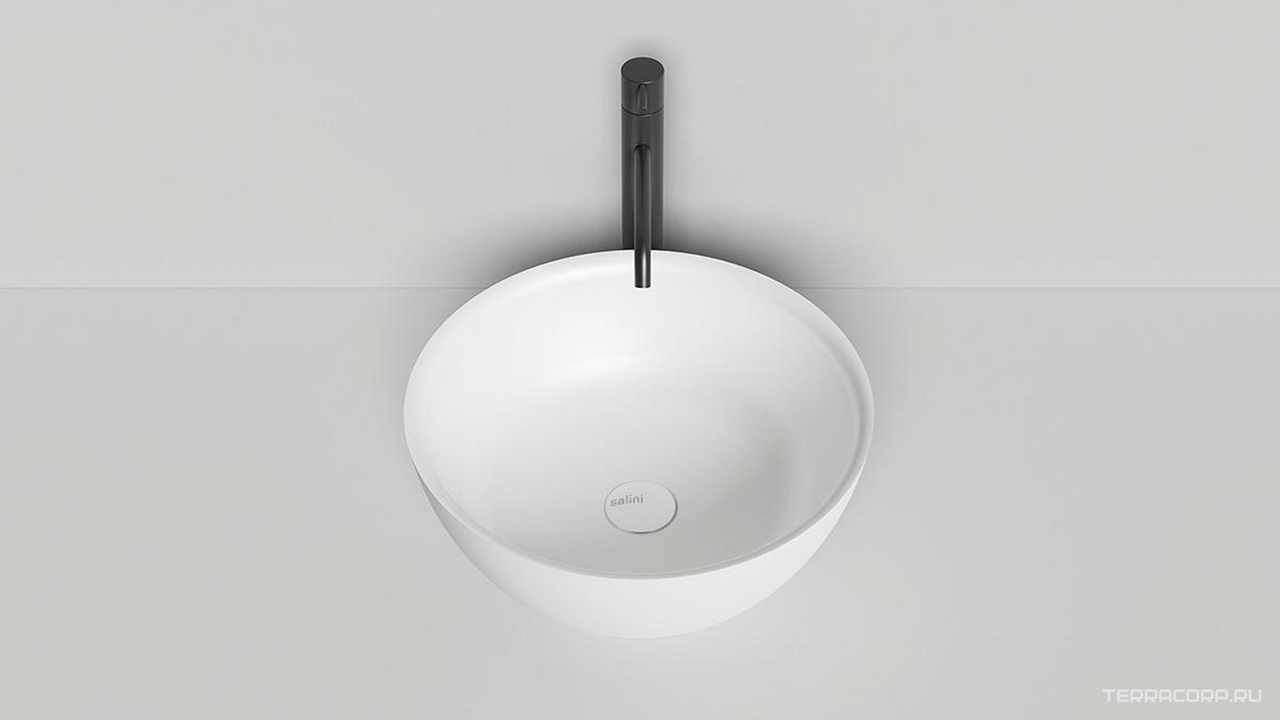 Раковина накладная круглая 425х425х155мм, без отв.д/смесителя, перелива, литой камень S-Stone матовый цв.белый, Alda 02 ZZ