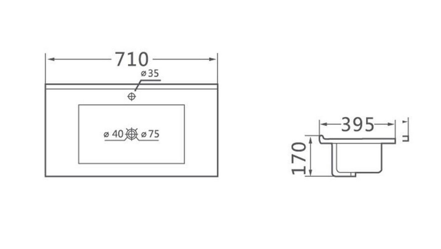 Раковина 710x395x170мм керамическая, цвет белый ZZ