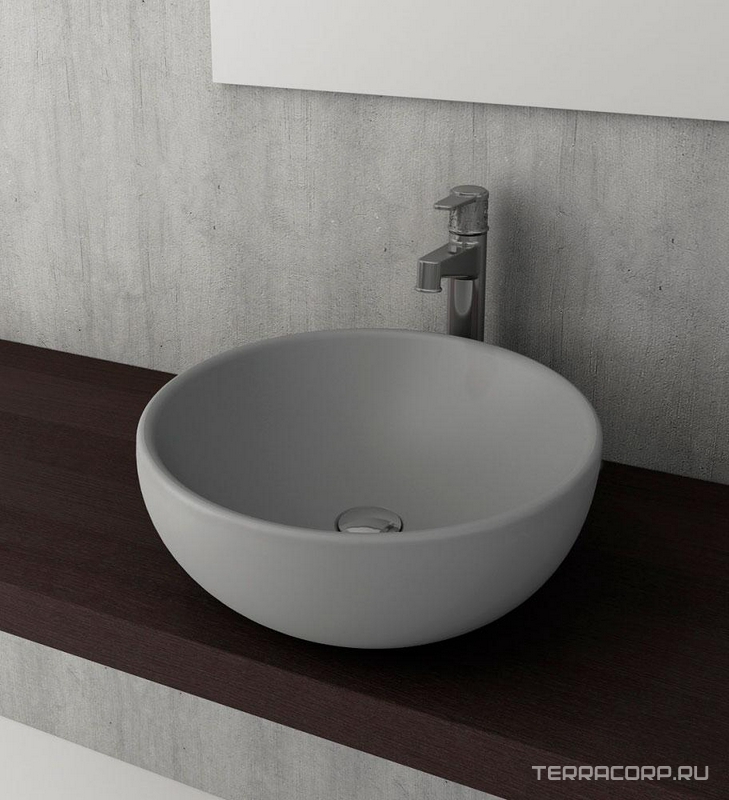 Раковина-чаша круглая 45х17,5 см, БЕЗ отверстия под смеситель, цв. серый матовый, ZZ