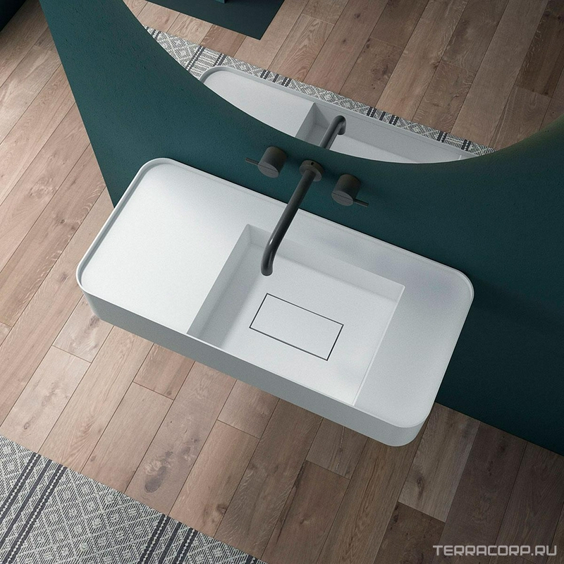 Раковина подвесная 1200х400х150мм, без отверстия для смесит., без перелива, накладка слива в компл.,(иск.камень Solid Surface цв.белый мат), Vincea ZZ