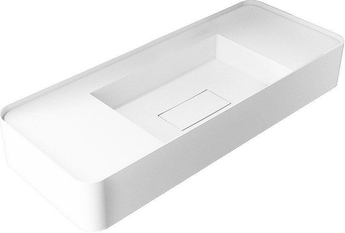 Раковина подвесная 1200х400х150мм, без отверстия для смесит., без перелива, накладка слива в компл.,(иск.камень Solid Surface цв.белый мат), Vincea ZZ