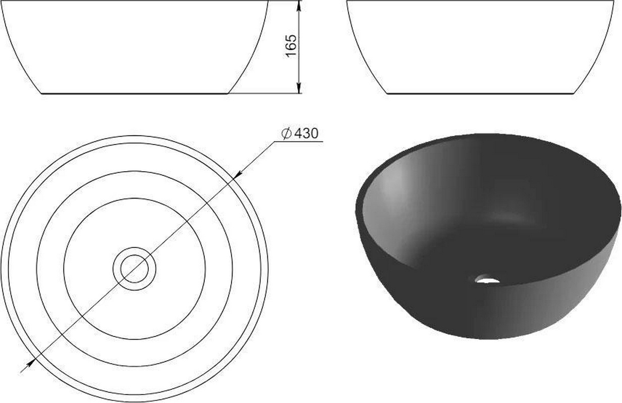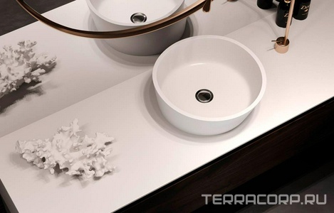 Раковина накладная 430х430х165мм, без отверст. для смесит., без перелива, д/к в цвет раковины в компл.,(иск.камень Soft rock цв.белый мат), Moon ZZ