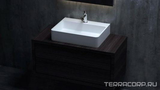 Раковина накладная на столешницу, прямоугольн. 600х450хh133мм, с 1 отв.д/смес, без перелива, (литой камень S-Stone матовая цв.белый), Ottavia