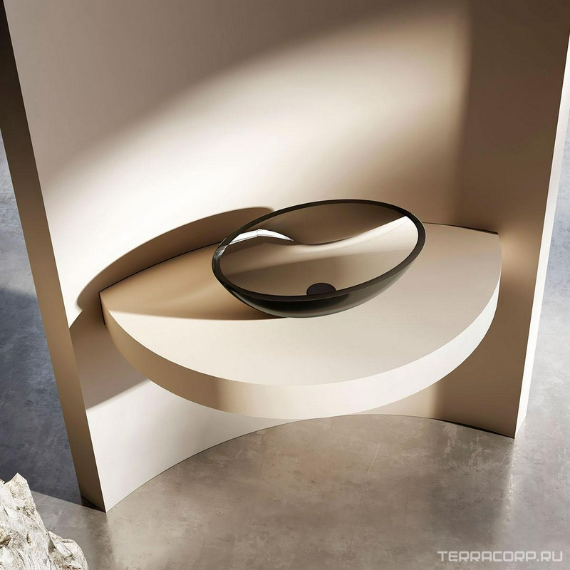 Раковина накладная 500х350х150мм, без отверстия для смесителя, без перелива, (полиэфирная смола цв.черный глянец), Vincea ZZ