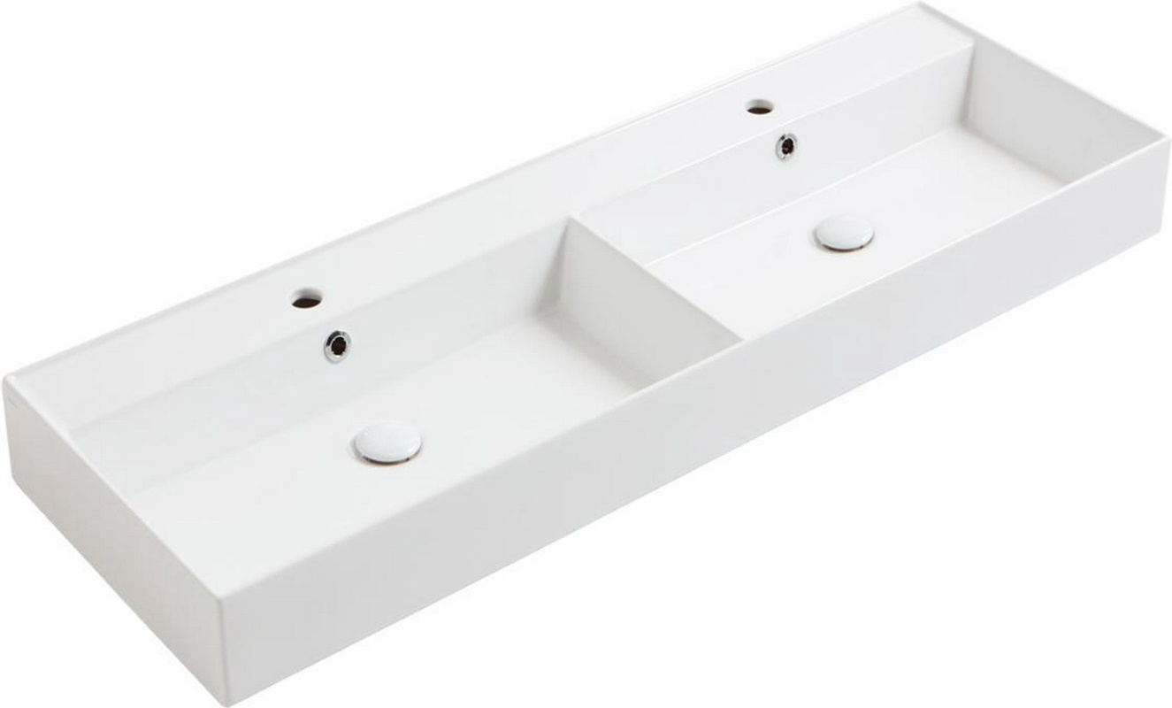 Раковина двойная, подвесная/накладная на столешницу, 141х46хh13см, с 2 отв.д/смесит., с переливом, без крепл., Agile ZZ