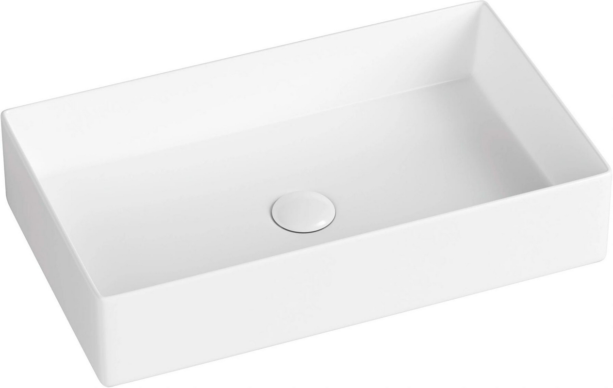 Раковина накладная на столешницу, прямоугольн. 600х450хh133мм, с 1 отв.д/смес, без перелива, (литой камень S-Stone матовая цв.белый), Salini Ottavia 1103201M