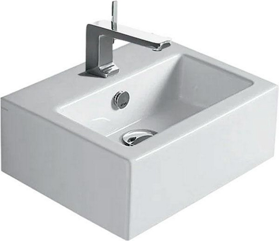 Раковина подвесная/накладная на столешницу, прямоугольная, 650х480хh160мм, с 1 отв.д/смесит., с переливом, без крепл., (цв. белый), Quadro