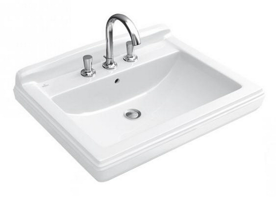 Раковина 650х530мм, 3 отв. д/смес., установка на пьедестал 7232 и п/пьед. 7231 (R2 Star white ceramicplus), ZZ Villeroy & Boch Hommage 7101A2R2