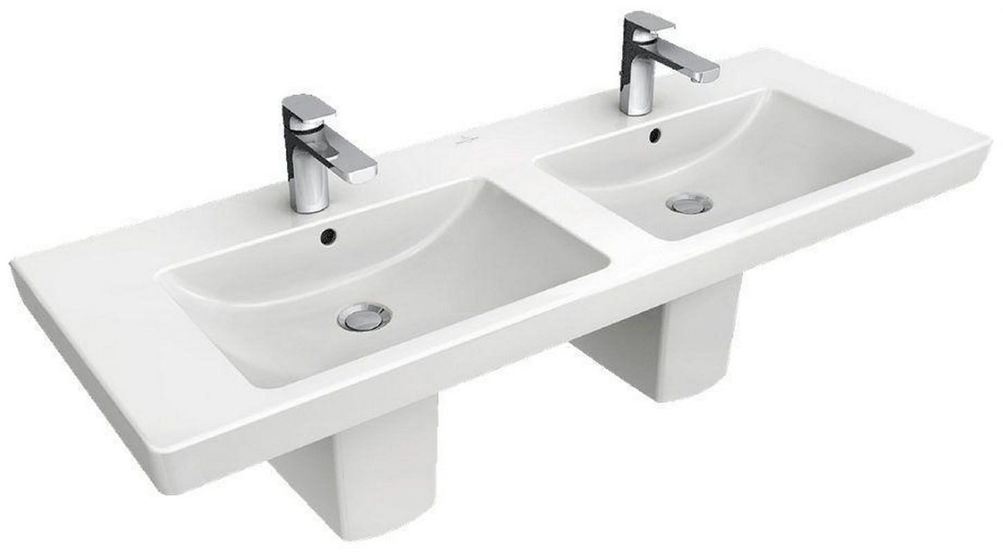 Раковина двойная1300х470мм, с 2 отв.д/смесителя, для установки с мебелью и п/пьедесталом, (цв. R2 Star white ceramicplus), Subway 2.0 ZZ