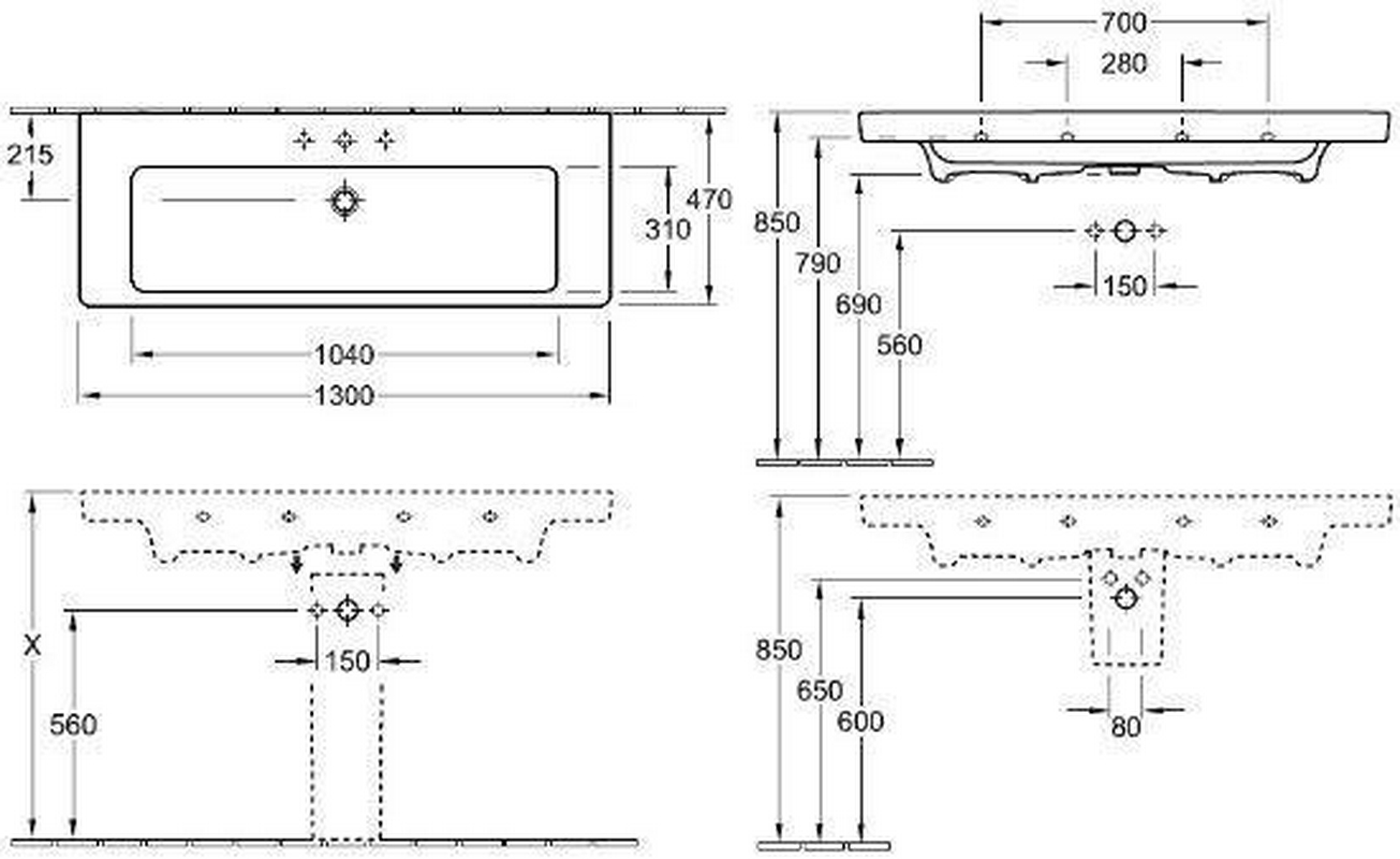 Раковина 1300х470мм, с 1 отв.д/смесит., без крепл., (цв. R1 white ceramicplus), Subway 2.0 ZZ