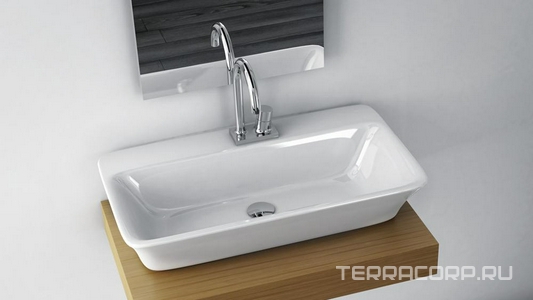 Раковина подвесная / накладная на столешницу, прямоугольная 600х450хh160мм, с 1 отв.д/смесит., с переливом, (цв. белый), Cow ZZ