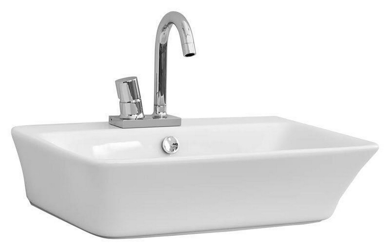 Раковина подвесная/накладная на столешницу, прямоугольная, 650х480хh160мм, с 1 отв.д/смесит., с переливом, без крепл., (цв. белый), Quadro