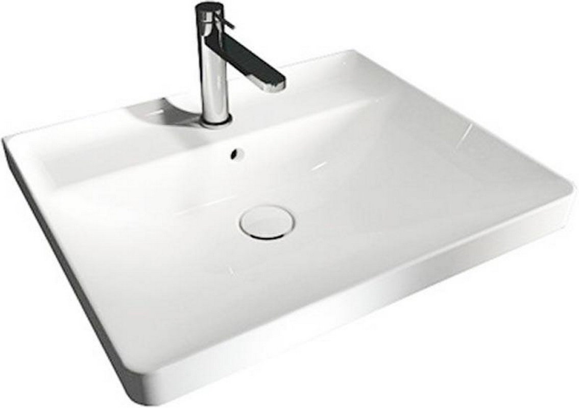 Раковина подвесная/накладная на столешницу, прямоугольная, 650х480хh160мм, с 1 отв.д/смесит., с переливом, без крепл., (цв. белый), Quadro