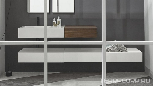 Раковина прямоуг. 113х50хh16,5см, двойная, по 1 отв.д/смес. в каждой чаше, без перелива и пробок слива, (цв.Gloss White), Modulo ZZ