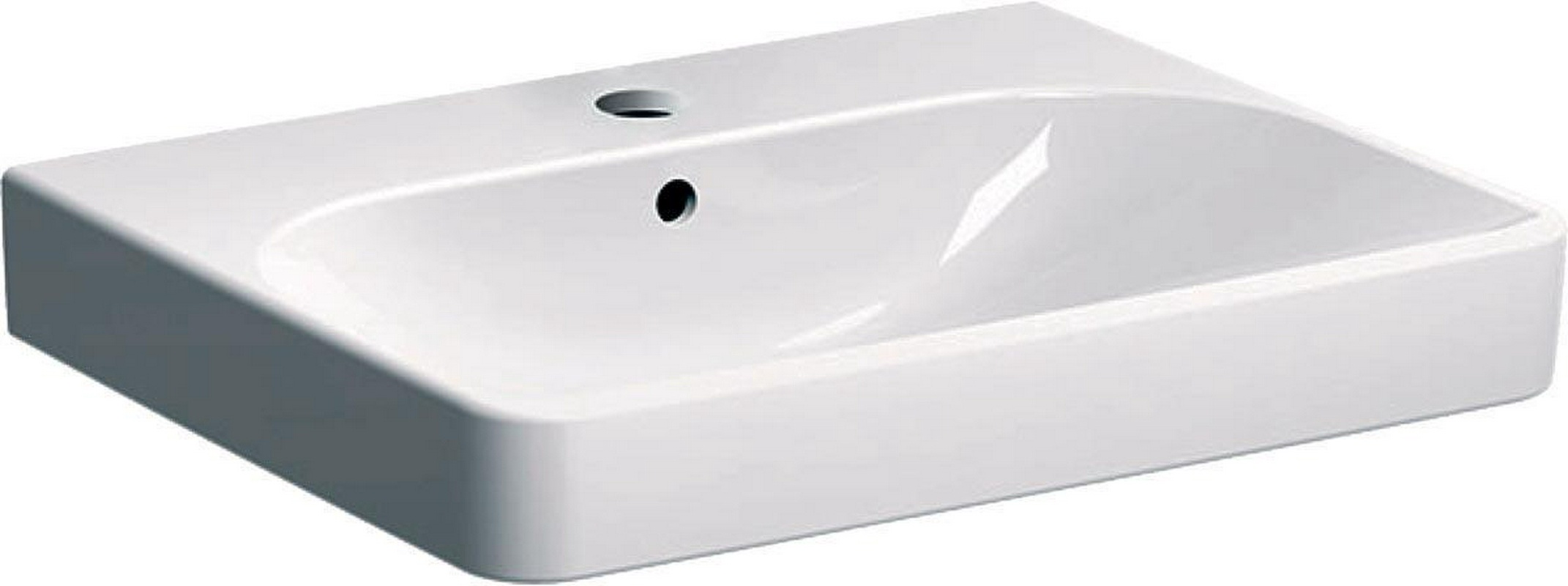 Раковина подвесная/накладная на столешницу, прямоугольная, 650х480хh160мм, с 1 отв.д/смесит., с переливом, без крепл., (цв. белый), Quadro