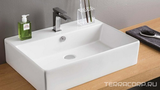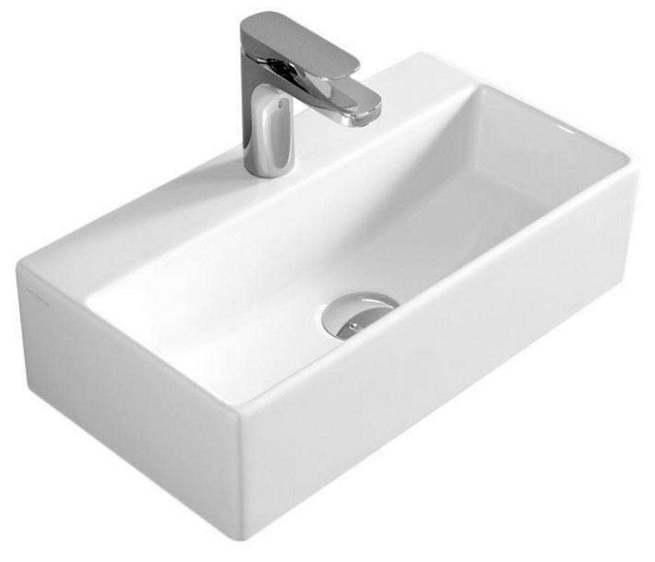 Раковина подвесная/накладная на столешницу, прямоугольная, 650х480хh160мм, с 1 отв.д/смесит., с переливом, без крепл., (цв. белый), Quadro