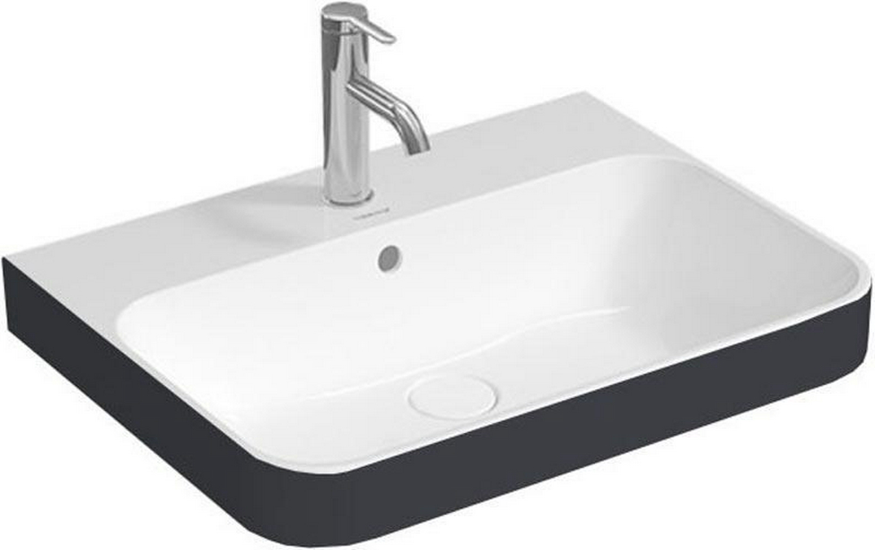 Раковина на столешницу 600х460х135мм, с переливом, с д/к с керамич. покр-ем, крепёж в компл. ( цвет-внутри белый, снаружи антарцит) ZZ Duravit Happy D.2 Plus 2360606100