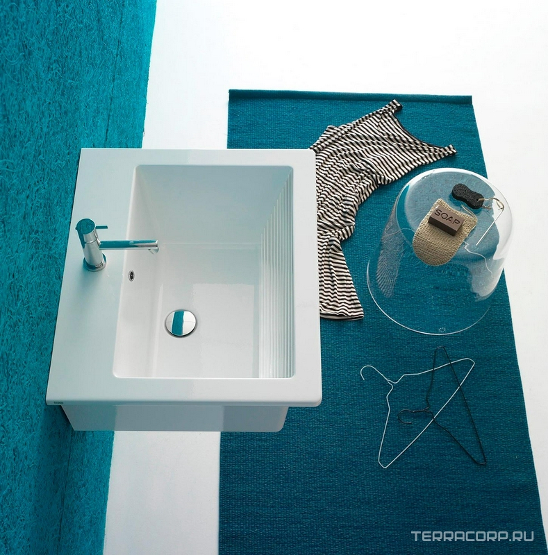 Раковина хозяйственная 60х55хh25см, с 1 отв.д/смесит., (отверстие выбито вручную), с переливом, крепеж в компл., Forty3 ZZ