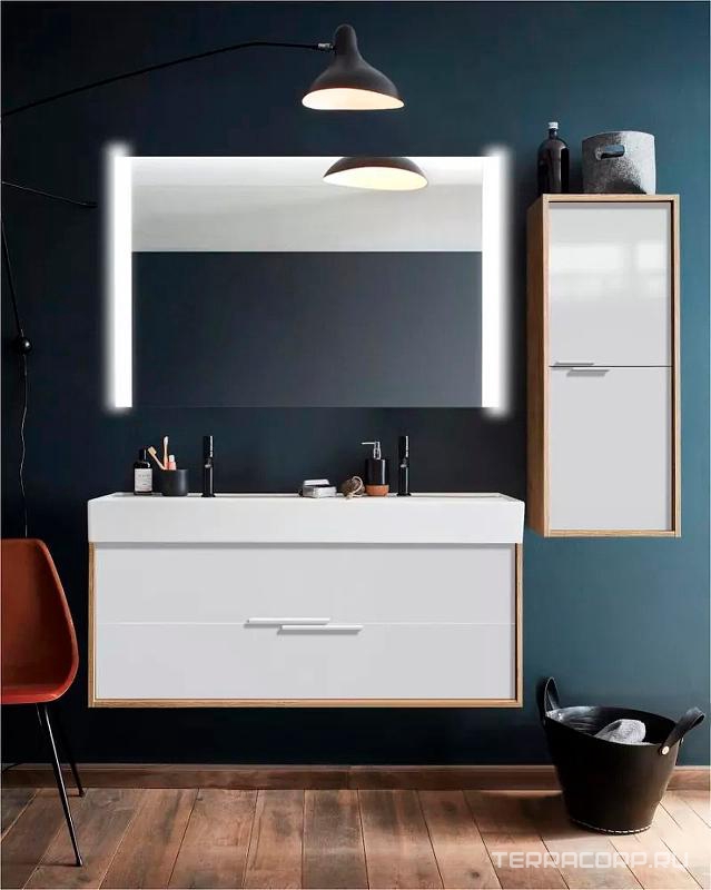 Раковина подвесная/накладная 120*46 см, 2 отверстия под смеситель, цв. белый ZZ