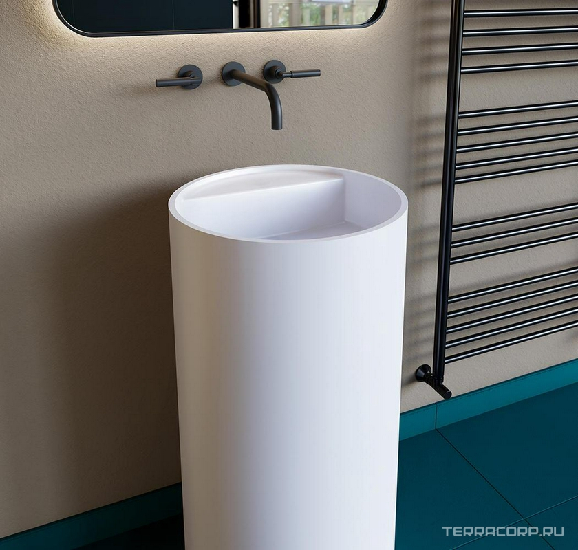 Раковина 450х450хh850/950мм, напольн,кругл,без отв.д/смес.и перел., литой камень S-Stone, матов.цв.RAL1015, донный клап.Up&Down в компл.,Armonia 01 ZZ