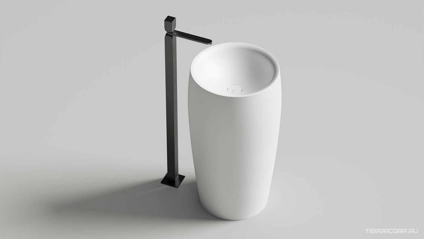 Раковина 470х470хh900мм, напольная, круглая, без отв.д/смес и перел., литой камень S-Stone мат.цв.RAL3012, донный клапан Up&Down в компл., Alda 03 ZZ