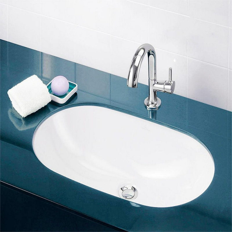 Раковина встраиваемая снизу, 530х320мм, без отв.д/смесит., с переливом, крепёж в компл., (цв. 01 белый), O.Novo