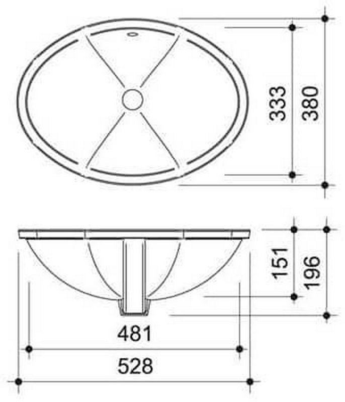 Раковина для установки под столешницу, овальная 620(545)х410(335)хh175мм, без отв. д/смес., с переливом, шаблон, крепёж в комп., Connect ZZ