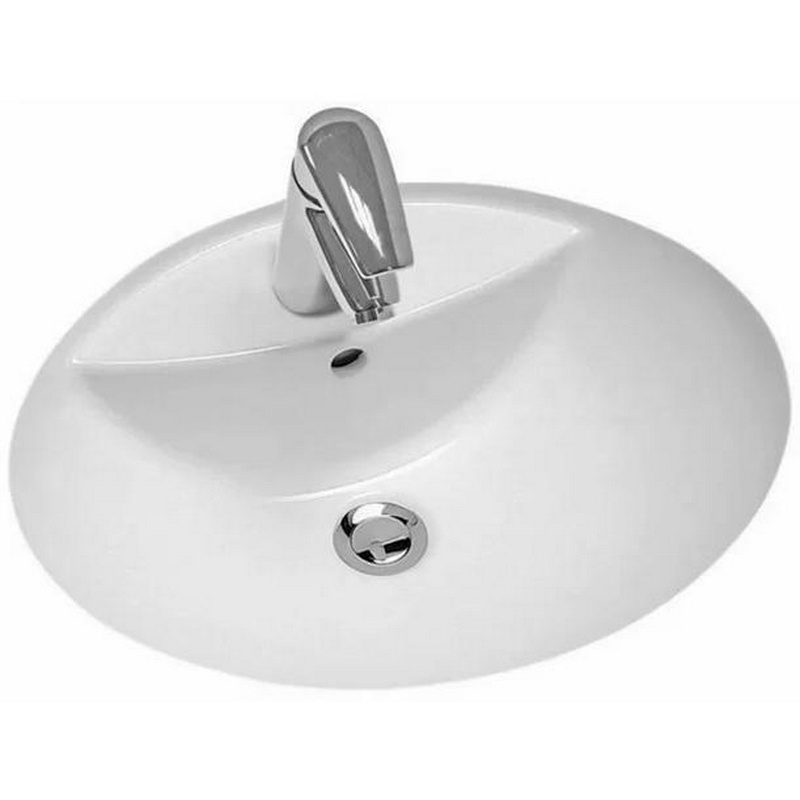 Раковина полувстраиваемая в столеш.сверху, овальная, 645х387хh165мм, без отв.д/смес, без перелива, литой камень S-Sense глянец,цв.белый, Marea 01 ZZ