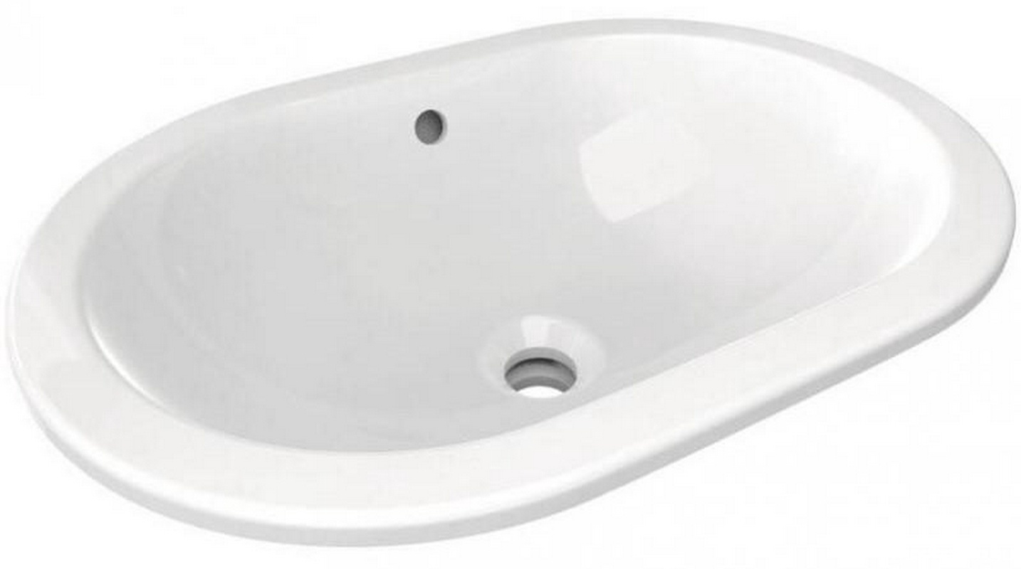 Раковина встраиваемая снизу 600х350мм, без отв.д/смесит., с переливом, крепёж в компл., (цв. 01 белый), O.Novo