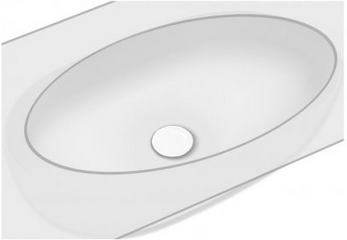 Раковина для установки под столешницу, (встраиваемая снизу) 750х380хh120(150)мм, овальная, без отв. для смесит., крепёж в компл., 21:15 S ZZ Hatria Happy Hour Y8AR01