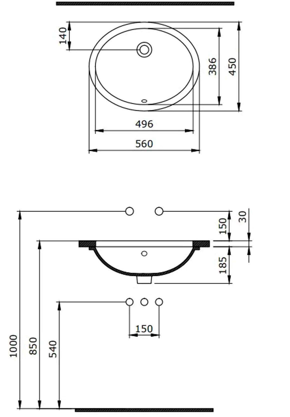 Раковина 56 cм, встраиваемая снизу, без отверстия под смеситель, цв.белый, ZZ