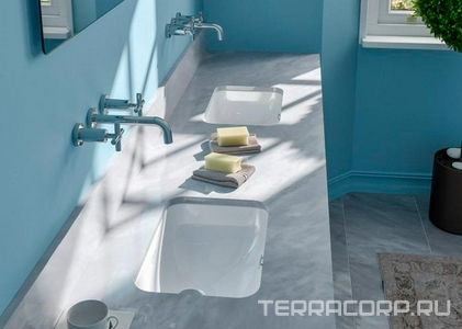 Столешница 850х500мм, с отв для смесит., S-Stone Costa с интегрированной раковиной в один уровень матовая 10 ZZ Salini Marea 200421M (индивид заказ)