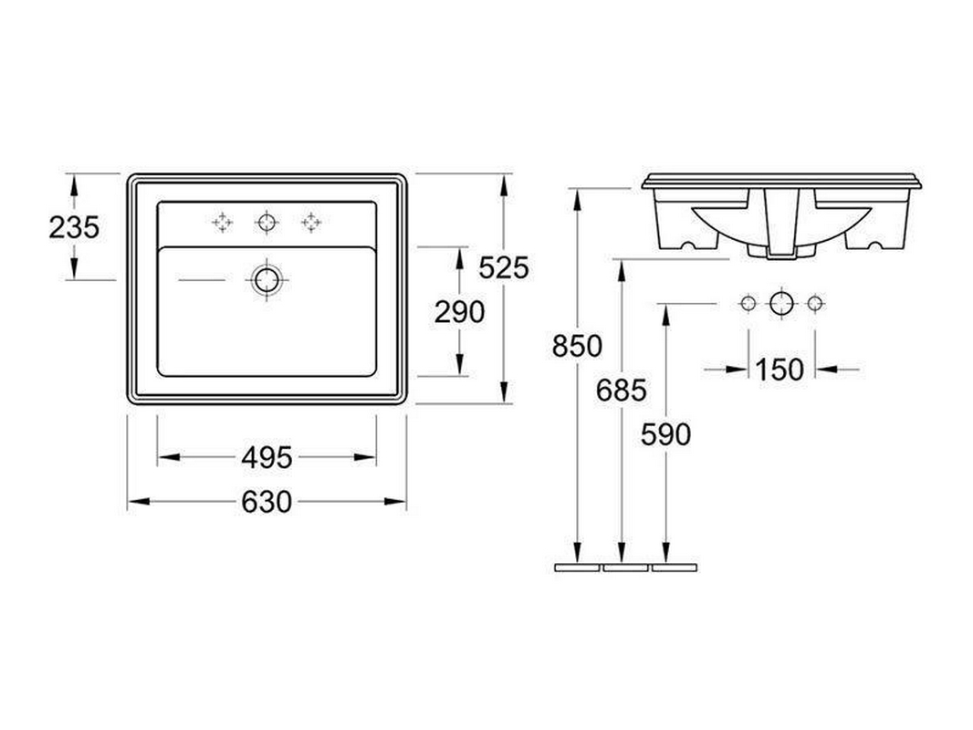 Раковина встраиваемая 630х525 мм, 3 отв. д/смес., (R1 white ceramicplus), Hommage ZZ