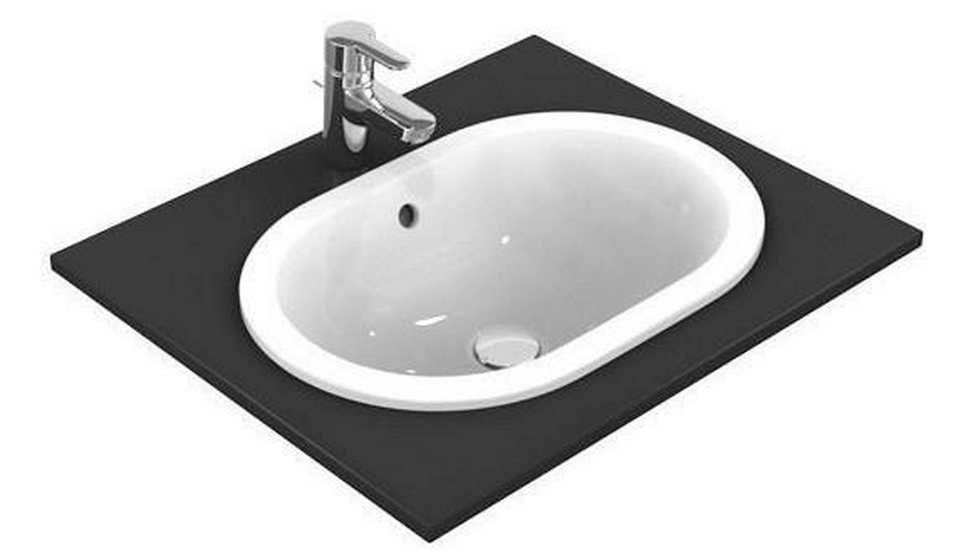Раковина встраиваемая в столешницу сверху, овальная 480х350мм, без отв. д/смесит., c переливом, Connect ZZ