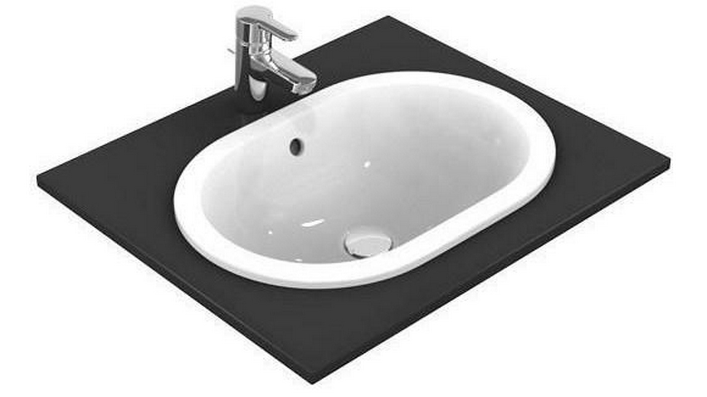Раковина встраиваемая в столешницу сверху, овальная 550х380мм, без отв. д/смесит., c переливом, Connect ZZ