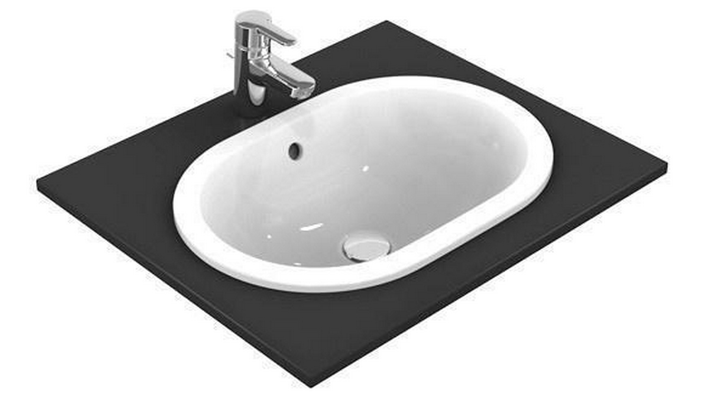 Раковина встраиваемая в столешницу сверху, овальная 620х410мм, без отв. д/смесит., c переливом, Connect ZZ