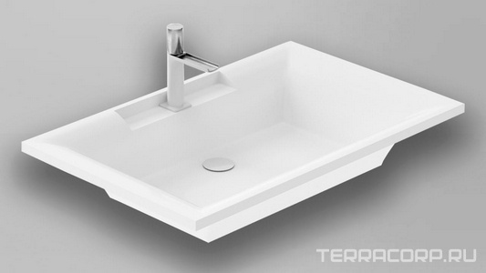 Раковина встраиваемая в столешницу сверху, прямоугольная 750х340хh30(170)мм, без отв.д/смесит., с переливом, Stockholm ZZ