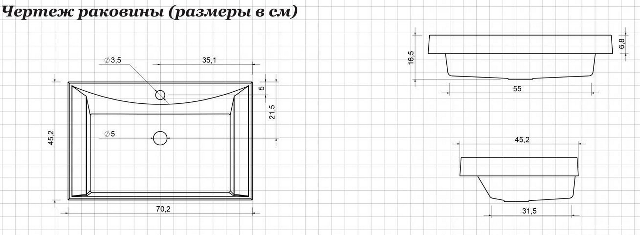 Раковина Цвет и Стиль Счастье 70| 70x16x45