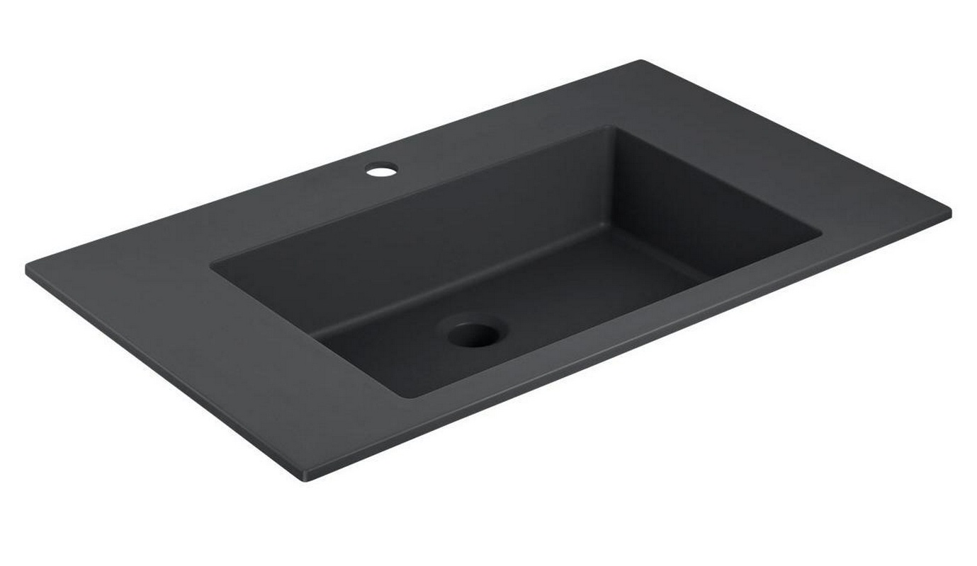 Раковина накладная на тумбу 800x480мм, с 1 отверстием для смесителя, с переливом, (искуственный камень цв.черный), Vincea ZZ