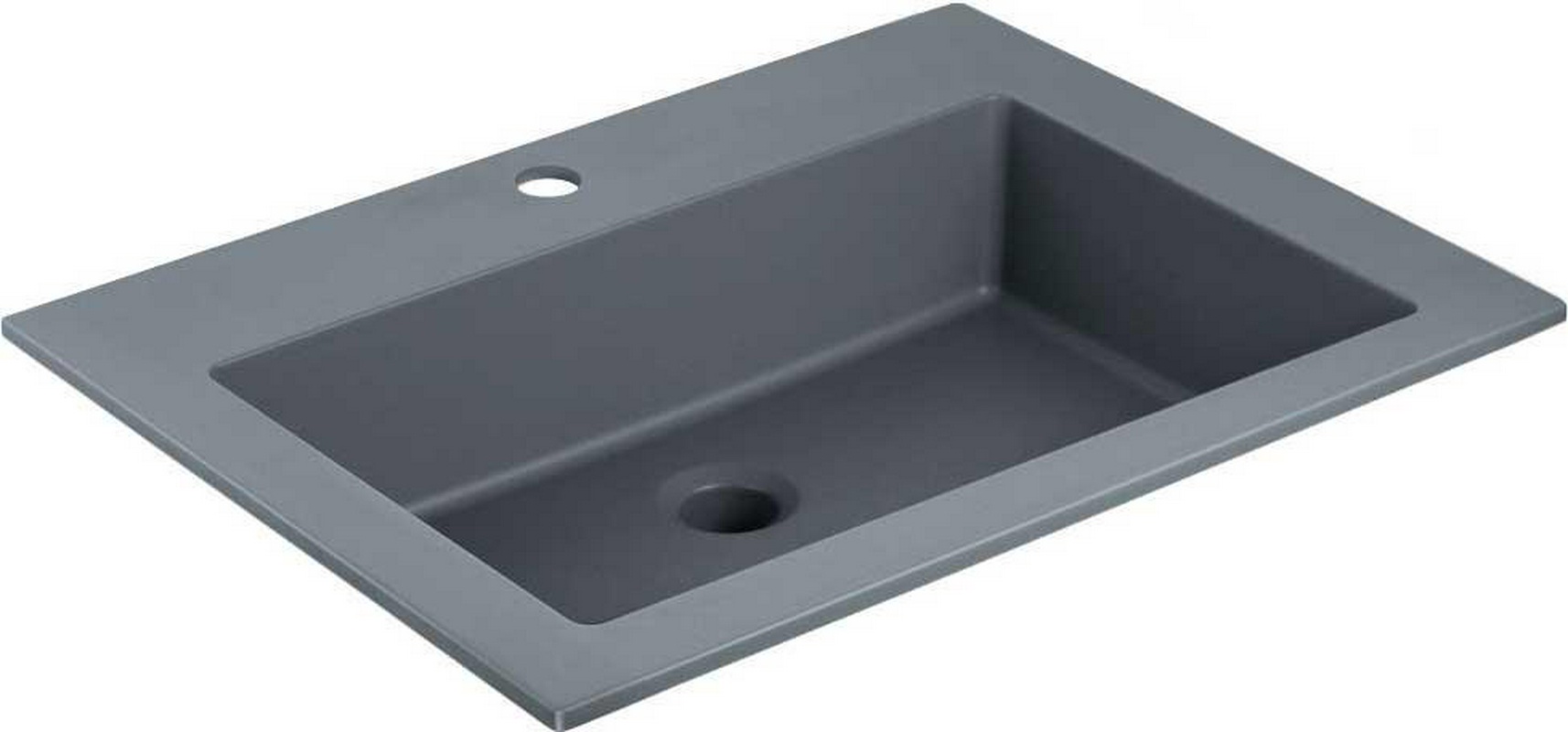 Раковина накладная на тумбу 600x480мм, с 1 отверстием для смесителя, без перелива, (кварцевый камень цв.серый), Vincea ZZ